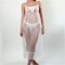 キラキラスケスケ生地にレース付きロングスリップ&Tバック ホワイト ホワイト