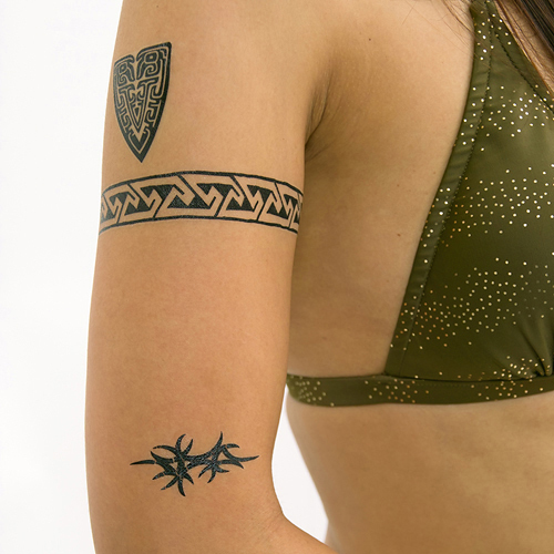 TATTOO(タトゥー)シールで、グッと色っぽく!いつものコスプレ衣装に合わせて、こだわりの箇所に貼り付けるだけ!特殊な素材を使用しているので、皮膚の動きと一緒に伸び縮みします。入浴したり、海やプールに入っても2、3日は取れません!あなたならどこに貼る?SM女王様風に胸元?ほのかにセクシーな首筋?クールに決まる腕?小悪魔ちっくな足首?パーティーに、お祭りに、イベントに、大活躍!あなたの個性で選んでね!