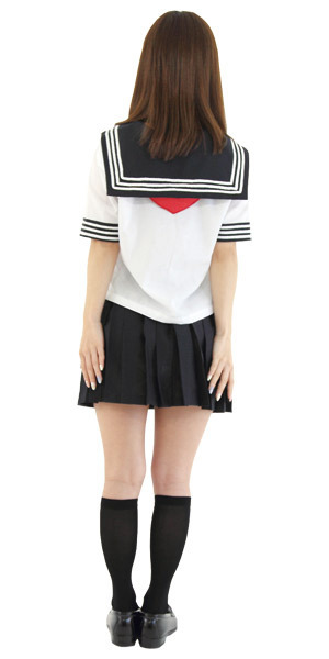 赤いスカーフがポイント!人気の定番セーラー服コスプレ。涼しげな夏服仕様の半袖タイプ!襟元や袖のオーソドックスな3本ラインが超リアル!ミニ丈のプリーツスカートがセクシーなスクール系コスチュームです。※Lサイズ(b17496)、LLサイズ(b17522)あります。