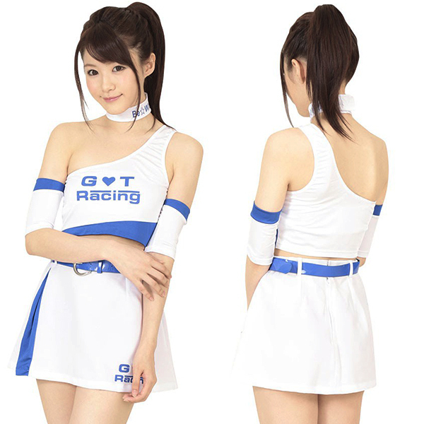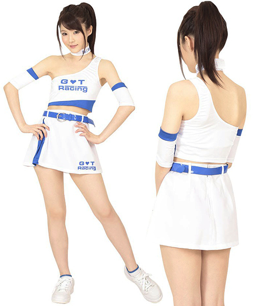 白に青のポイントカラーが爽やかな、レースクイーン衣装!ピッタリと胸元にフィットするトップスは、セクシーさを忘れないワンショルダーデザイン!わき腹、おヘソを露出するセパレートタイプになっていて、ミニ丈スカートにもこだわりの青を挿し色に。アームホルダーとチョーカーがアクセントになった、スッキリとした印象のレースクィーン衣装です!パンストと合わせても映えそうですね。