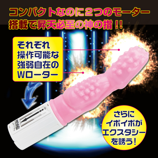 神の指で一気に昇天!?本物の指のように自由自在に動くブラックカラーのバイブ「ゴッドフィンガーW」。小さめのコンパクトボディが扱いやすい!本体2箇所にはモーターを搭載!存在感抜群のイボイボが、アナタのアソコ全体に刺激を与えてくれます!一人でも潮吹きは夢じゃない!最高の快感を味わえるバイブです。単4電池×3本使用。