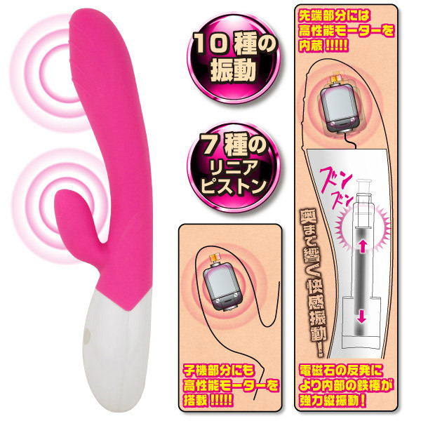 味わったことのない衝撃振動!ハイテク技術を取り入れた最新バイブレーター。●さらさら滑らかなシリコンボディ●先端&子機に高性能モーター搭載●電磁石による反発を利用して内部の鉄棒が強力に縦振動●10種振動×7種リニアピストン搭載●お手入れラクラクな生活防水仕様●2時間充電(フル)で1時間使用可能●USB変換ACアダプター付属。内部の鉄芯が動くたび、奥まで貫かれるようなズンズン刺激を堪能できるバイブ。重厚感のある「突き」でシビれるような気持ち良さを味わえます。