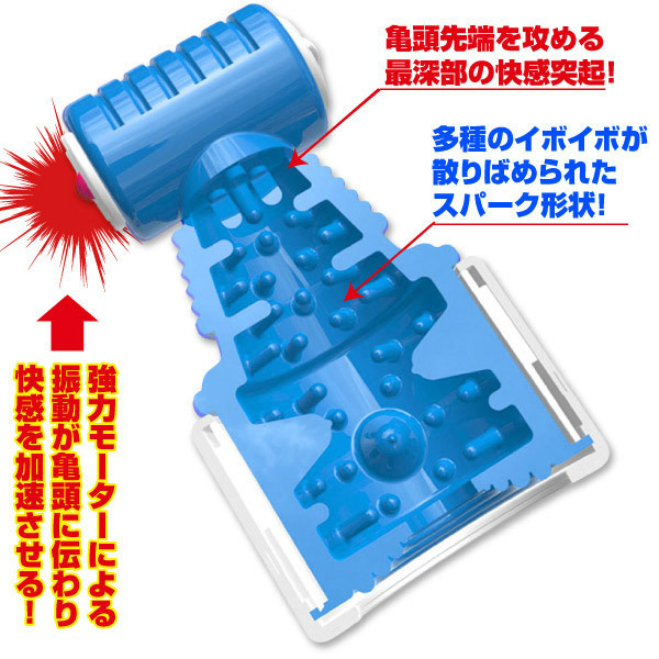 ターゲットは亀頭!先端をすっぽり包み込んで刺激する電動オナホール。●おもちゃのようなユニークデザイン●先端の円筒部に強力モーター内蔵●バラエティに富んだ12種パターン●カリ責めに特化したカップ型形状●多様なイボがたっぷりの内部構造●最深部に尿道を刺激する突起付き●フィット感のあるソフトシリコン。まるで帽子のようにカポッとかぶせて集中的に刺激を与える亀頭特化型オナホ!同シリーズの他バージョン(b23958)(b23959)もあわせてどうぞ。