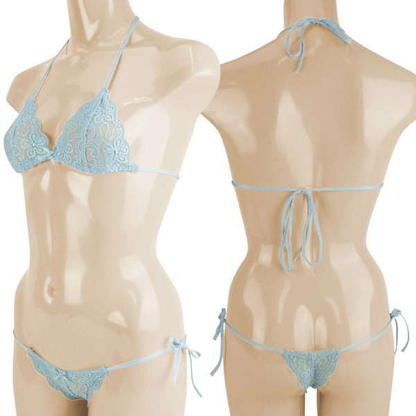 たくさんのお花をちりばめた可憐な総レースブラ&ショーツ。●爽やかなサックスカラー●あらゆる箇所がうっすら透けて見えるシースルー生地を使用●繊細で美しい花柄刺繍入り●自由にサイズ調節ができる紐タイプ●Mサイズ・日本製。妖艶で美しいデザインが大人の色気感じさせます。普段使いにもデートの日にも役立つ大人のランジェリーです。