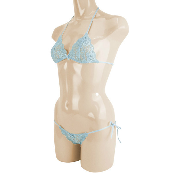 > ストレッチフラワー総レースブラ&ショーツ サックス