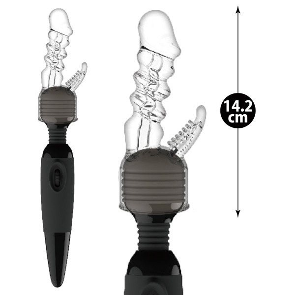 普通のバイブじゃ太刀打ち不可能!強烈振動をストレートに体感できる電マアタッチメント。●ヘッド直径4.5〜5.2cmの電マにセット●清潔感漂うクリアカラータイプ●先端が張り出したバイブ風ボディ●波打つ凹凸竿で挿入にアクセント●クリトリス刺激のブラシ突起付き●同型の黒色タイプ(b24917)も。出し入れするたびにゾクッとくるリズミカル刺激!挿入しやすい滑らか先端とウネウネ波打つ竿がたまらない電動マッサージャー用アタッチメント。クリトリスにも快感が走るので、中も外も大満足でフィニッシュできます。