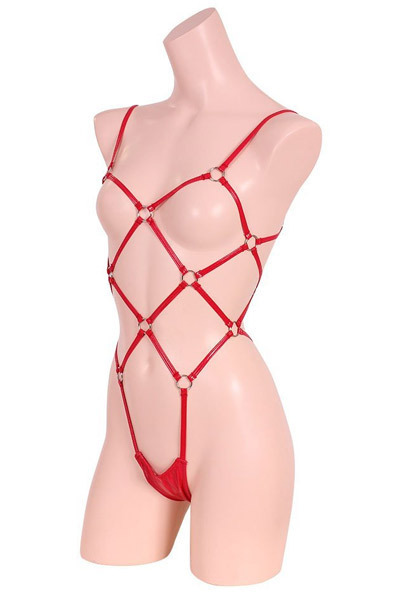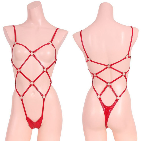 > エナメル&リング亀甲プレイスーツ レッド