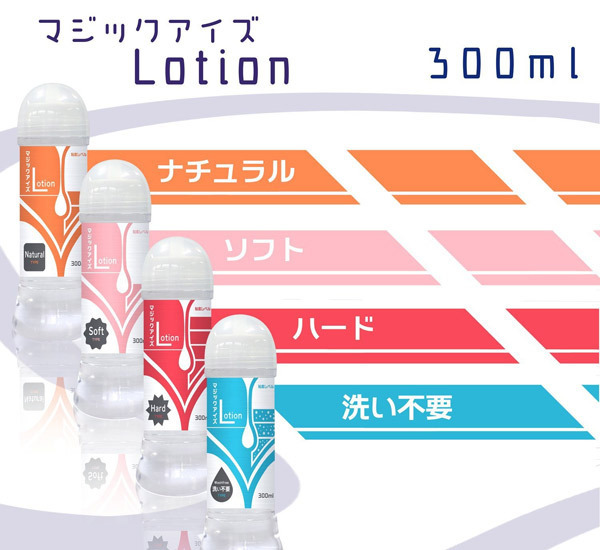 マジックアイズから原点回帰のローションシリーズが登場!ローションって何だかんだシンプルなものが一番じゃない?というあなたへ贈る高粘度の「マジックアイズローション ハード 300ml」。ハードは敏感で繊細な部分に最適なタイプ!使用用途も様々、粘度が高いので潤滑液としてもご使用いただけます。粘度レベルは最高レベルの『レベル4』、水で薄めてお好みの濃度でもお楽しみ頂ける無味無臭のドロドロ系ローションです。内容量も充分楽しめる大きめの300ml入り!『色んな楽しみ方』を知っている方にもオススメの逸品です。 |