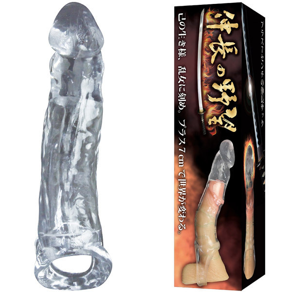 己の生き様、乱女に刻め!装着するだけで+7cmも伸長するオールカバーのペニスサック「伸長の野望 クリア」。どなたでもフィットしやすいストレッチ素材のエラストマーを使用した透け感のあるクリアサック!玉袋でガッチリとホールドできる玉掛けリング付きなので安定感も抜群です。