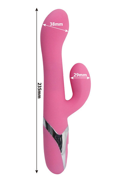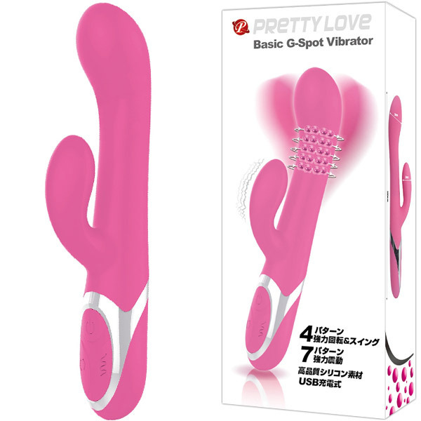 生活防水&静音設計のバイブレーター。人間工学に基づいたデザインでGスポットを集中的に刺激!ぽこっと出っ張ったバイブの先端が膣奥を押し上げ、スイングするバイブに内蔵された5段敷きのパールボールが膣内をかき回す♪さらにバイブと連動して7パターンにも及ぶ振動機能が備わった子機により、クリトリスを同時に責め立てます!USB充電だからプレイ中にコードが邪魔になるといったストレスを感じることもありません。およそ120分の充電で90分の連続使用が可能!また、本体は高品質のシリコン素材を採用。なめらかな質感で肌触りも抜群です♪極めて稀ではありますが、シリコン素材のアダルトグッズにシリコン系ローションを使うとグッズが溶けることもありますので、ローション使用の際には水溶性のものをオススメいたします。 |