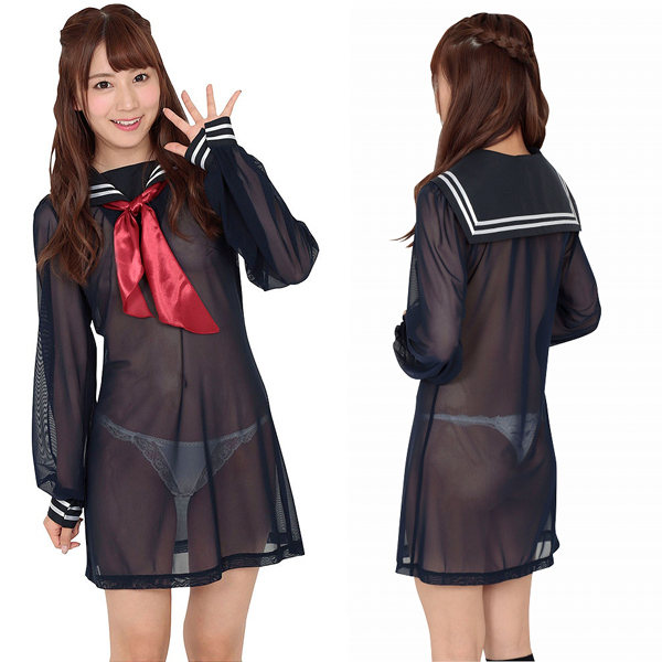 > シースルーセーラーワンピ 紺