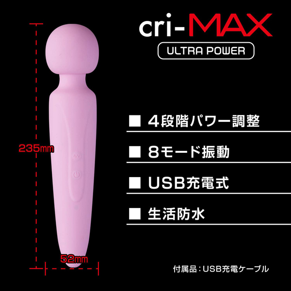振動パワーは世界トップクラスの実力!身体の芯まで響く強力電マ「クライマックス ピンク」。シンプルなボディには8種類の振動パターンと4段階の強弱を搭載!奥まで響くような重みのある振動とバリエーション豊かな機能を心行くまで楽しめる♪2時間の充電で約1時間の連続稼働が可能なUSB充電式(充電ケーブル付属)、丸洗いできる生活防水