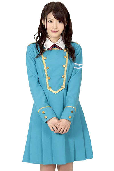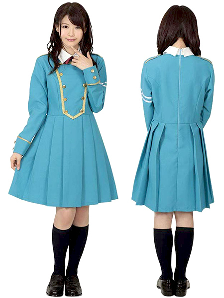 格好良さの中に可愛さを取り入れた制服デザインの本格派アイドルコスプレ(青)。各所に飾られた金のボタンやラインがアクセント!踊るたびにヒラリと舞うプリーツスカートにキュンとしちゃうアイドルコスチュームです。