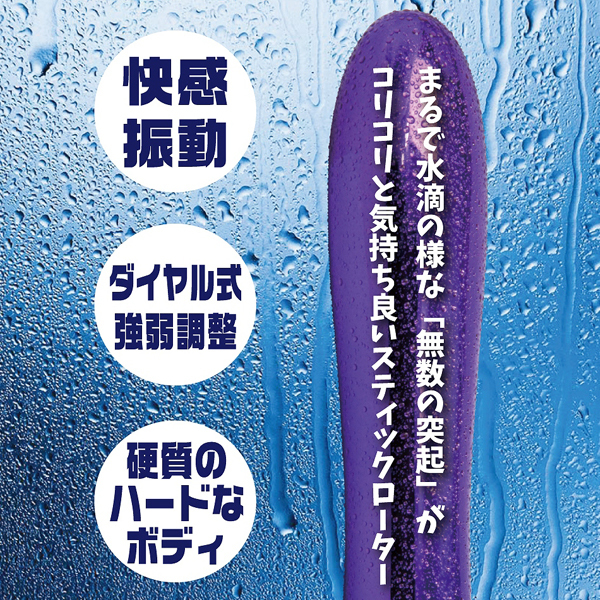 硬め素材&無数の突起が敏感部分をピンポイントに刺激する電池式のスティック型ローター。強弱の調節は直感的に操作できるダイヤル調整式、単四電池を2本使用