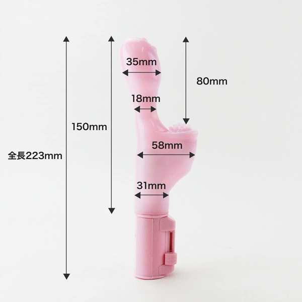 女性の声から生まれた、もっちり柔らか質感が好評のファーストバイブシリーズに新作が登場!膣中にフィットし抜けにくいコブ型シェイプが特徴的な子機付き電池式バイブ。奥に当たるたび先端にある2つのイボが快感アップ!無数の突起が配置されたブラシ型の子機によるクリ刺激でオルガズムを感じやすい身体へ♪スイング&振動機能搭載、単四電池を4本使用