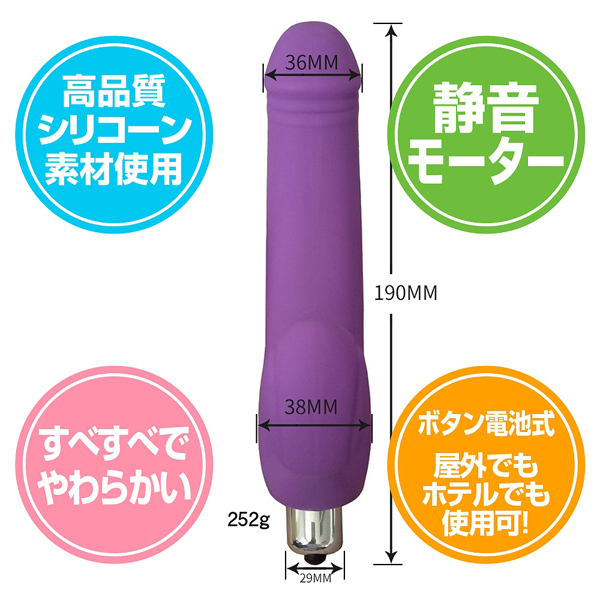 初心者向けグッズを多数取り扱う「Memeplus」からオンオフ簡単操作で扱える肌に優しい電池式バイブが登場。興奮高まるリアルな造形と柔らかなヘッドによるピンポイント刺激が持ち味!滑らかな高品質シリコンの質感と振動が組み合わさり快感を生み出します。内蔵ローターは個別での使用も可能!丸洗いもできるため、いつでも衛生的です。LR44ボタン電池を3個使用