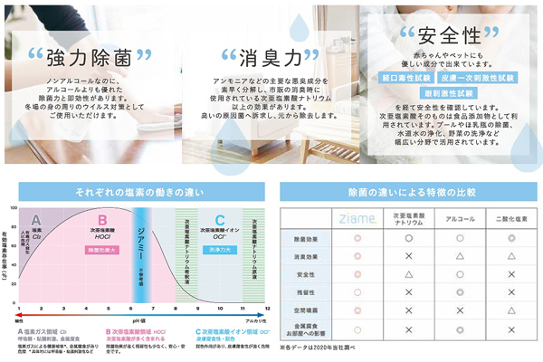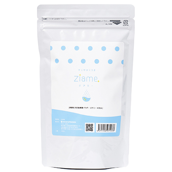 肌に触れても安心な弱酸性!除菌消臭のダブルパワーを兼ね備えた、水で溶かして作る粉末タイプの「Ziame(ジアミー)」。ホテルや風俗店等でも使える40包入り業務用大容量サイズ!いつでも何処でも手軽に新鮮な弱酸性次亜塩素酸除菌水を作れます。日頃のウイルス対策や悪臭対策に◎「フルガン(b31063)」等の噴霧器、スプレーにしてお使いください。500ml×40回分