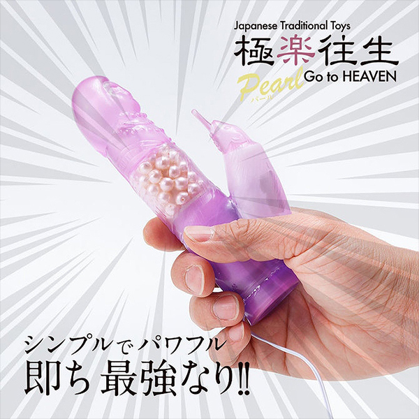 扱いやすい手頃なハンディサイズのバイブで見た目は往年のモデルを踏襲した「極楽往生 パール入り」。本体ボディとコントローラー部分が分離していて有線でつながるタイプのバイブですが、シンプルながらも非常に扱いやすく、スライドボタンを上下するだけで強弱をコントロールができてしっかりとクリトリスとGスポットの2点責めでイカせてくれます♪パールモデルとなっているので先端ヘッド部分がグリグリと回転しGスポットを的確に刺激!挿入時には穴口でパールが蠢きピンポイントでクリを振動刺激してくれます。サイズ的にもバイブ初心者からベテランまで幅広くお楽しみいただけます♪ |