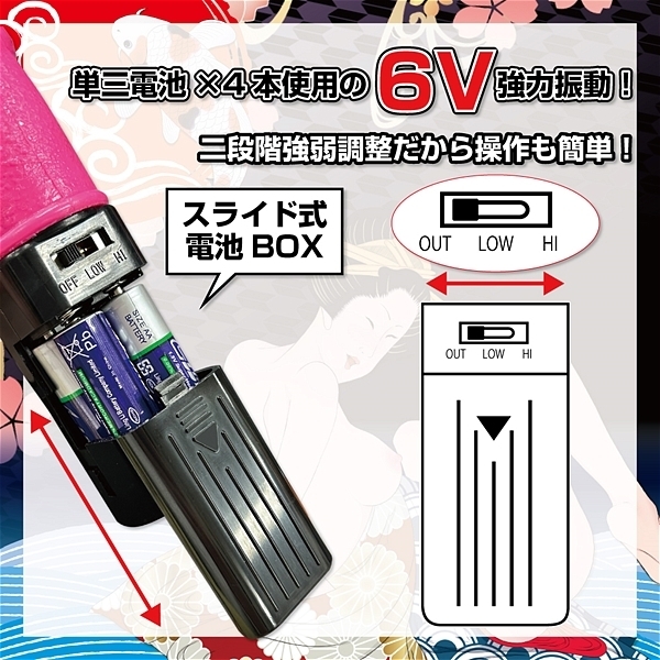 ズッ…ドン!と奥を突き上げられる快感で、淫らに濡れる秘孔から淫靡な滝が噴き上げる!安心安全の日本国内製造品。ズッ…ドン!と奥から突き上げる快感に、善がり乱れる事間違いなし。至高の突き上げ一本バイブが新登場。
