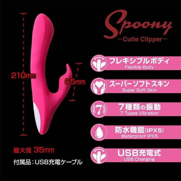 ふわふわモチモチとして理想的な膨らみを持つヘッドにクリを挟んで振動刺激するサブバイブ!フレキシブルに曲がるシャフトなどバランスの取れたバイブです♪自分好みの気持ちいいポイントを狙いやすいように角度調整ができる挿入シャフト!クリに当てたりクリを挟めるサブバイブ♪グレードの高いシリコン素材を採用しているので安全面・衛生面にも優れていて、肌触りも滑らかだから挿れ心地も抜群!グリップが短めなので女性がセルフで使う際にもハンドリングしやすいデザインとなっています♪7種類の振動パターンを搭載していて、電源はUSB充電式で60分のフル充電で55分連続稼働!IPX5等級の生活防水仕様なので丸洗い可能でメンテナンスもしやすくなっています♪ |