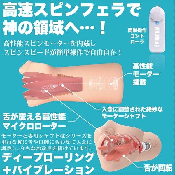 女優<今井夏帆>を3Dスキャンし、オリエンタルなセクシーさを漂わせる口元や、短めでキュートな舌を忠実に再現。奥までずっぽりのローリングフェラで、亀頭ナメから喉奥での丸呑みまでをAV以上に堪能できます。人智を超えた神の舌づかい見ているだけで興奮モノの快感ローリングを実現できたのは、舌や口腔に合わせて入念に調整し、今もなお改良を続けているモーターと専用シャフトのおかげ。