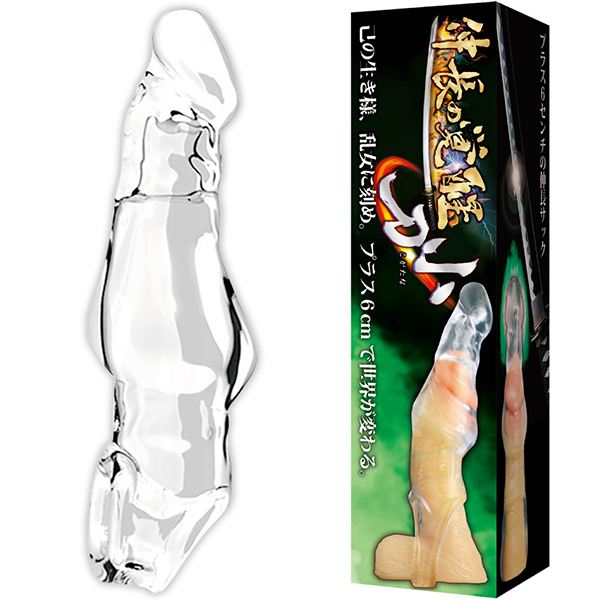 大人気伸長サックシリーズに待望の新作が登場!己の生き様、乱女に刻め、プラス6cmで世界が変わる伸長サック!!先端部分は肉厚に強化され、長さに加え太さも増強!大きなコブが腟を圧迫刺激更なるロングプレイも可能に。玉袋でガッチリとホールドして安定感抜群。誰でもフィットのストレッチ素材(エラストマー)使用。●透け感のあるクリアサック