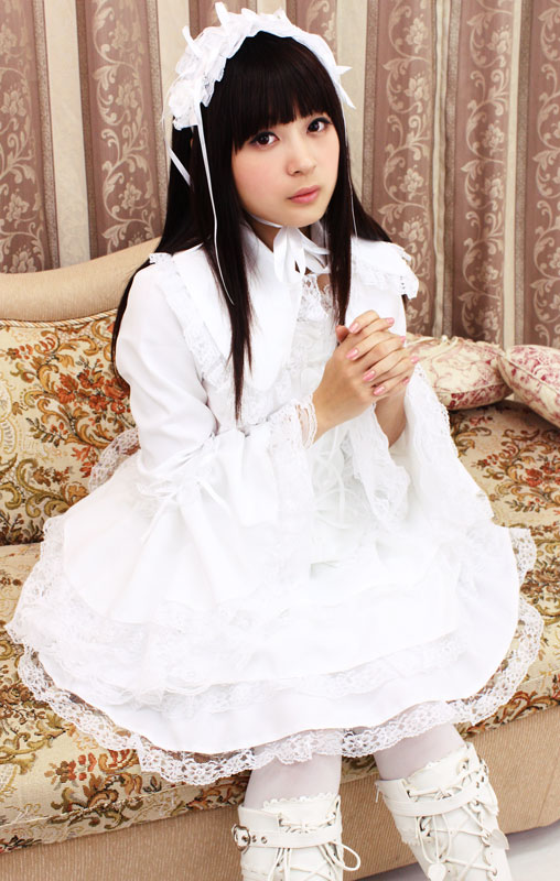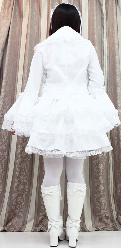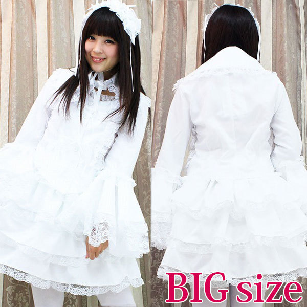 たっぷりのフリフリレースでボリューム感を持たせた、真っ白なチュールメイド服(BIG)。ボリューミーなフリル使いがゴージャス!大きめの衿は取り外しが可能。キュートなヘッドドレスもセットになった、ゴスロリ系コスプレ衣装です。※水洗い不可、塩素系漂白剤による漂白不可、アイロンは中温で当て布使用、ドライクリーニング可、色落ちの可能性があります。※こちらの商品は在庫の状況によりお届けまでに4日〜7日程度かかる場合がございます。