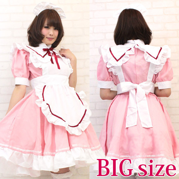 ピンクに馴染む白が乙女チックなワンピースのメイドさん衣装(BIG)。ふわりと広がるスカートの裾にフリルをプラス!パフスリーブで更に愛らしく、エプロンの肩口も大胆なフリルでふんわりと。カチューシャも存在感のある仕上がりで、砂糖菓子みたいなメイドさんに大変身!セーラー風の襟と襟元の赤いリボンが目を惹く、デザイン性の高いメイド服コスチュームです!※水洗い不可、塩素系漂白剤による漂白不可、アイロンは中温で当て布使用、ドライクリーニング可、色落ちの可能性があります。※こちらの商品は在庫の状況によりお届けまでに4日〜7日程度かかる場合がございます。 |