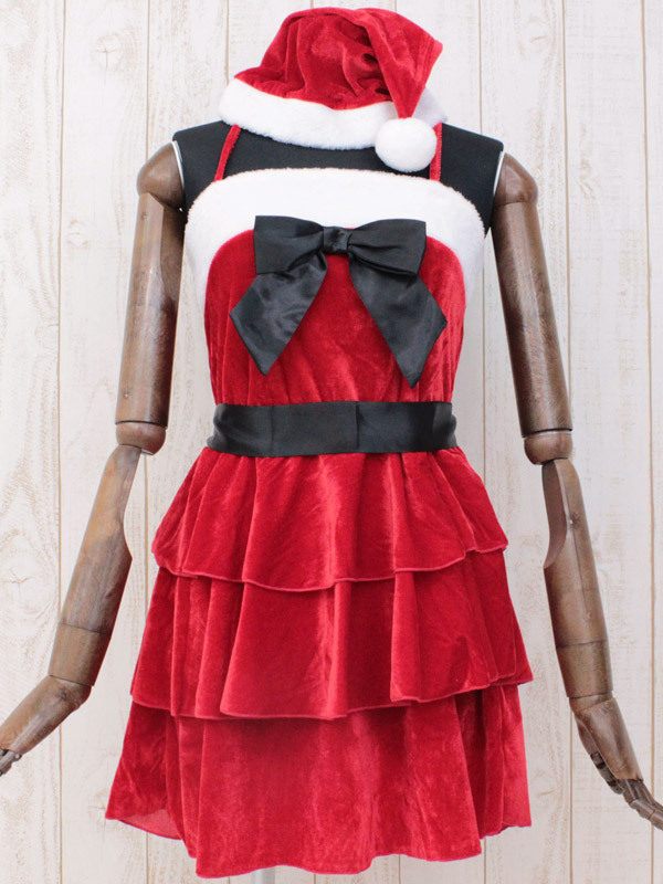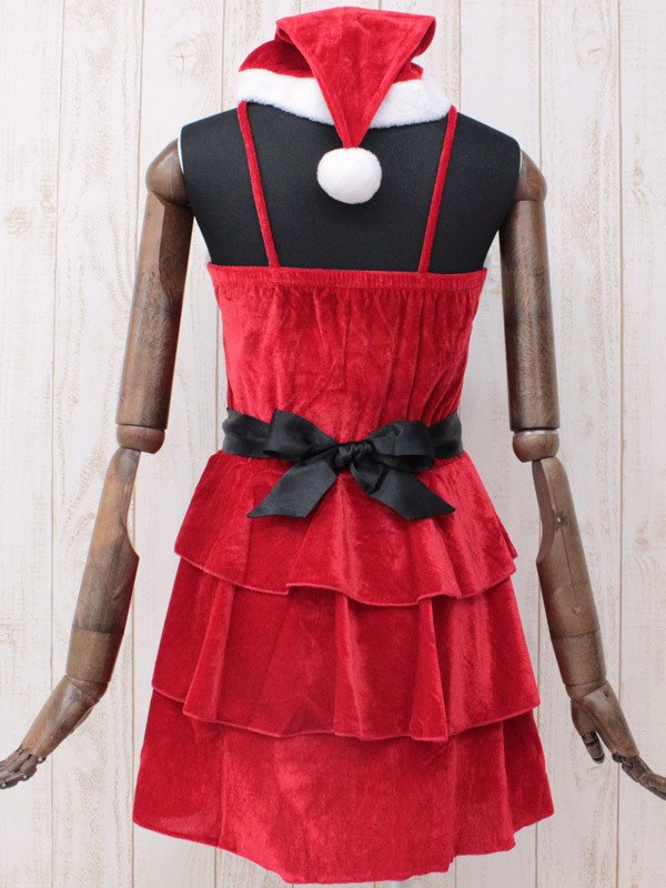 サンタと言えば、やっぱりこの色!三段フリルスカートが可愛い赤白のサンタコスチューム(M)です。フロントに付いた黒リボンと、腰紐を結んだ時にできるリボンが女の子らしさをグンッとUP!オシャレでセクシーな帽子付きのサンタ衣装です。※水洗い不可、塩素系漂白剤による漂白不可、アイロンは中温で当て布使用、ドライクリーニング可。※こちらの商品は在庫の状況によりお届けまでに4日〜7日程度かかる場合がございます。