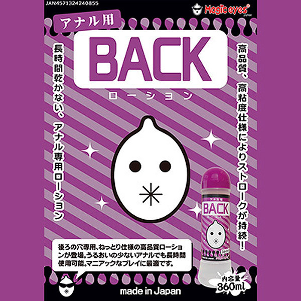潤い続いて乾きにくい!マジックアイズから、アナニーが捗るお尻専用の高粘度ローション「BACK」が登場。高粘度でも硬すぎず乾きにくい絶妙な使い心地で、アナタのお尻を守ります。グリセリンフリーなのでアナル愛好者の方はもちろん、初心者の方でも使いやすい安心の日本製ローション(360ml入り)です。