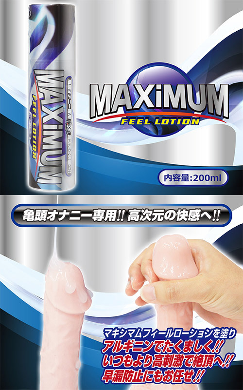 勃起力が上がる!?アルギニン、メントール成分を配合した、亀頭オナニー専用ローション「マキシマムフィールローション」(200ml)。適量を亀頭へ塗るだけで、元気がなかったムスコが見る見るうちに元気に!?早漏防止にも効果が期待できるので、気持ちよくなりながらムスコを鍛えることも◎。これ一本持っていればオナニーが捗ること間違いなし!さぁ、今すぐ高次元の快感へ逝っちゃって下さい。