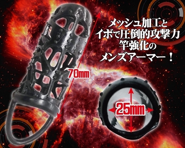 メッシュとイボで攻守両用!カリ首をぴったりホールドするハーフカバーペニスサック。●メッシュ&イボのステンド●サイズを選ばない伸縮素材●裏筋にイボを集中的に配置●カリ首をホールドする設計●固定できる玉掛けリング付き。感度を失わずに装着可能!亀頭を露出させるハーフカバータイプのペニスサック。軽い着け心地でもしっかりフィット!玉掛けリングは安定性を高めるだけでなく、締め付け効果で勃起力もUP!男性の魅力を最大限に引き出してくれる男性補助グッズです。