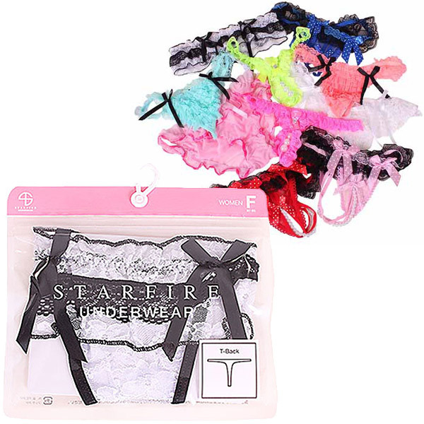 カラバリ&デザイン豊富♪エロ可愛レディースアソートショーツ10枚組セット。●女性用フリーサイズショーツ10枚組セット●色・柄・デザインはランダムのアソートタイプ●女子受け抜群の豊富なカラーバリエーション●可愛らしいチャック付きの個包装パッケージ入り●ディスプレイ用に便利なフック&チェーン付属。パールビーズやTバック、シースルー素材など「カワイイ」と「セクシー」がギュギュッと詰まった、デザイン豊富な女性用ランジェリーセット♪店舗用のディスプレイに便利なフック&チェーンも付属しています。※アソート商品のためショーツの種類はお選び頂けません。 |