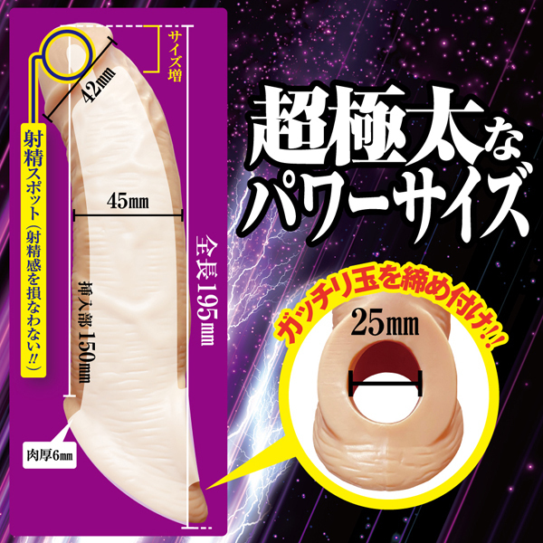 このサックで誰でも巨根になれる!「キングボーイ (Lサイズ)」。サイズ感・持久力・射精感もアップ!伸縮性もあるエラストマー素材でありながら、タマをガッチリ締め付ける装着感の良さ。フリーサイズなのでどんな方も装着できます!サック機能も一体化し、男性機能をサポート。射精スポットを配置したことで、快感度もさらにアップ。いつものプレイもグッと盛り上がる、漲る男性力をあなたに!Gスポット・ポルチオも十分に刺激でき理想的な亀頭のフォルムと女性が満足する太さを実現。