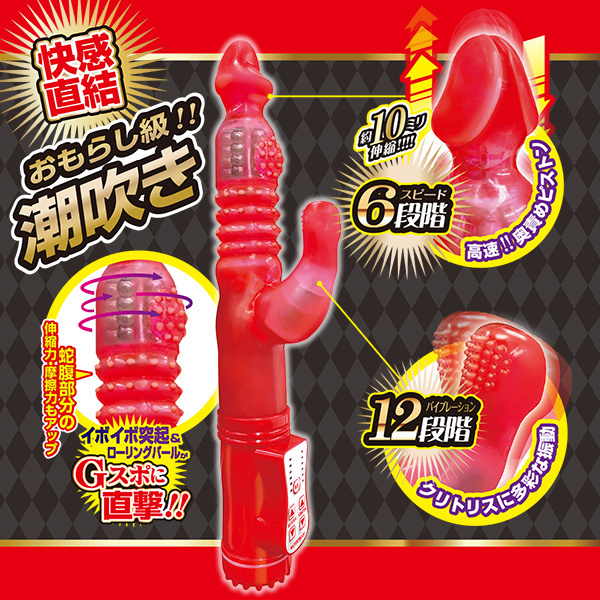 今日は奥でイッてみたい、そんなときに役立つのがこちらの「シオフキングP」です。挿入部分は12.5cm(伸縮時)と奥まで届きやすく、ジャバラが伸縮して奥をガン突きするから奥イキしたい方へおすすめのバイブです♪ヘッドは挿入しやすい亀頭型で反転機能を備えたパール回転が心地よくうねり、12段階の種類を備えた子バイブの振動が奥イキだけじゃなくクリも同時にしっかりと刺激してくれます。Gスポットにはイボイボ突起&ローリングパールの高速摩擦が快感を与え、ポルチオには6段階スピードの奥責め高速ピストンが膣奥を責めつつ同時にクリイキまでも味わわせてくれます♪快感直結で動作も多彩。生活防水だからたくさん潮を吹いても大丈夫!シオフキングと2本使いで潮吹き大会を楽しむのもいいですね♪ |