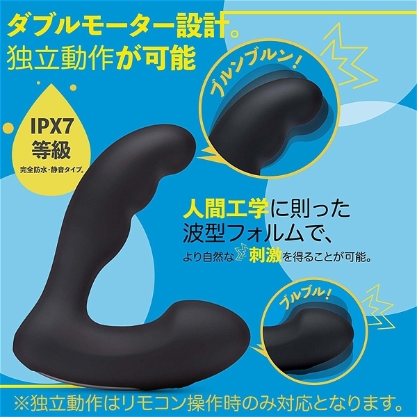 プロバー(PROBER)マッサージャーの人間工学に則った波型フォルムのデザインでより自然な刺激に酔い痴れましょう。本体は安全かつ気持ち良さを追求した良質なシリコーン100%。挿入部と会陰部がそれぞれ独立したモーター搭載で3つの振動レベル(弱・中・強)+4種類の振動パターンが組み込まれています。本体のみでももちろん使用は可能ですが、付属のリモコンを使用すれば、2つのポイントを個別に動作させることができるため、自由気ままに組み合わせて自分専属の気持ち良さをチューニング♪ピタッと簡単なマグネット式充電ポートでIPX7等級完全防水となっているため、どんな水性ローションでも安全に使用可能、使用後は石鹸と水で簡単に丸洗いできるので、快感を得ることだけに専念しましょう♪●充電2時間で約50分使用可能 |