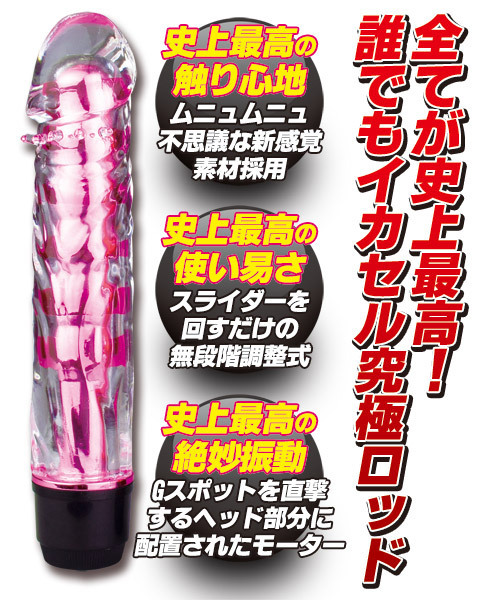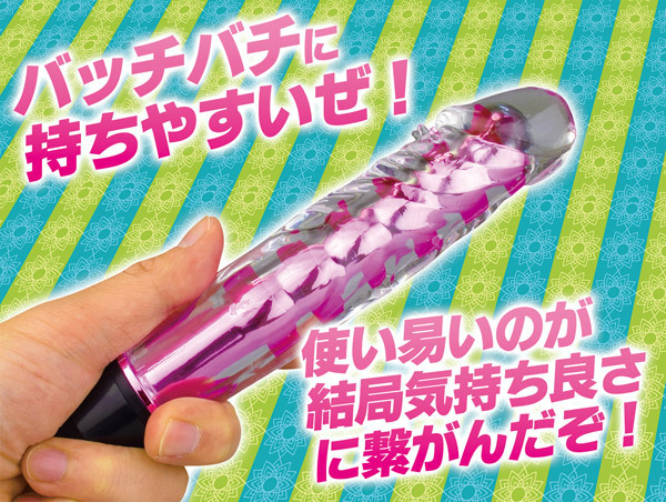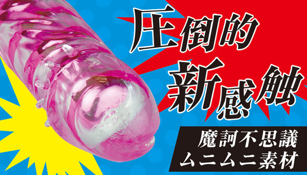 ムニムニ不思議な感触…シンプルだけどしっかりとした刺激を与える一本式バイブレーター。●ジュエリーのような輝きを放つクリアピンクカラー●肌を傷つけないソフト素材を採用●ヘッド部に強力モーターを内蔵●底部を回すのみの簡単操作●振動は無段階調節式●単四電池×2本使用。見た目からは想像つかないパワフルな振動がGスポットまで伝わり、絶頂へと導く…!初心者から上級者まで虜にするスティックバイブレーターです。