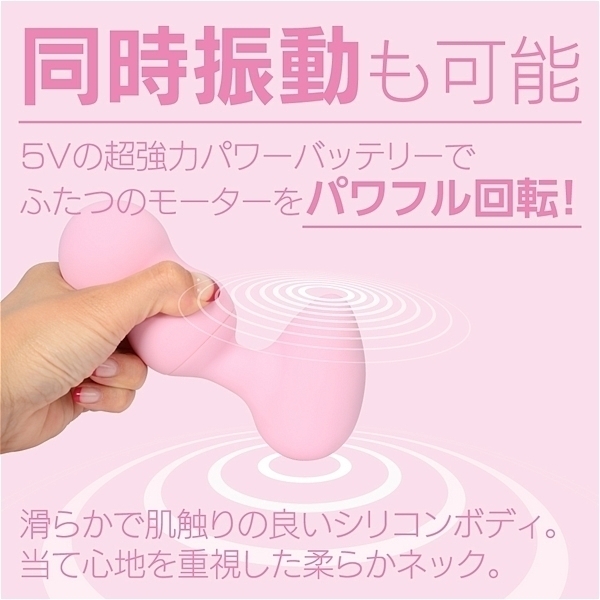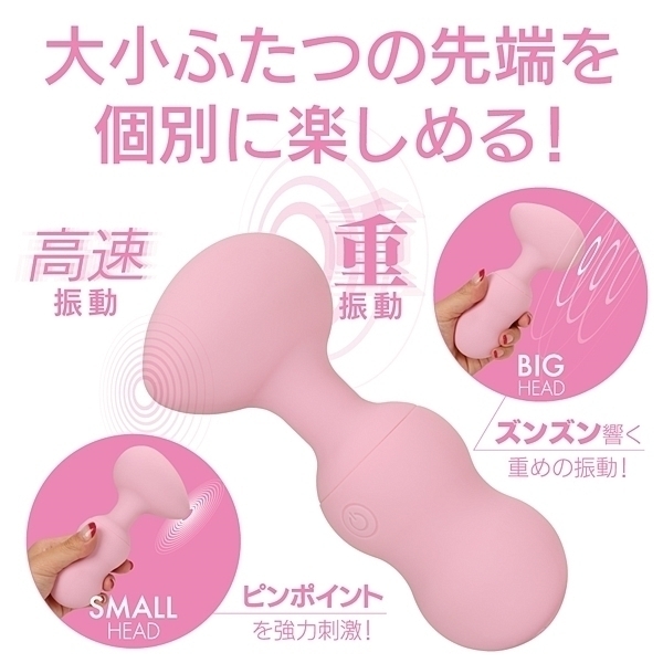 エッグ型ヘッドの左右に大小、サイズの違うモーターを配置!小ヘッドにはピンポイント用に微細振動モーターでポイント刺激を楽しめます。大ヘッドには重振動の大型モーターを搭載してデンマのダイナミックな振動を体感出来ます。電圧5Vの強力振動+高品質なオールシリコンボディだから触り心地も非常に滑らかで防水性能も完全防水を実現(防水等級IPX7)当て心地の良さを上げるフレキシブルネックの反発度にもこだわった絶品デンマです。さらに二つのモーターを個別操作出来るのでお好みに合わせて色々な楽しみ方が出来ます。もちろん同時振動も可能なので共に最強振動にした時のパワーは圧巻です。強弱も5段階に微調整が出来るので振動の好みに合わせて楽しめます。さらに5つのパターン振動も内蔵。満充電120分で最大60分使用可能。(使用環境により大幅に増減します。)●カラー:ピンク |