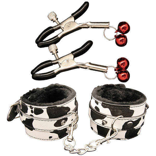 ユニークな牛柄デザインが印象的なSM入門用アイテムです♪セットには手枷・足枷・アイマスク・ボールギャグ・ニップルクリップの5点が含まれています!各アイテムは合皮素材で作られており、扱いやすくやわらかな使用感です♪手枷と足枷はフックで簡単に着脱可能で、初心者にもおすすめです!牛柄デザインはコスチュームと組み合わせることで、より世界観を楽しめます♪アイマスクで視界を遮ることで、感覚を引き立てる演出が可能です!収納や持ち運びにも便利なコンパクトなサイズ設計となっています♪気軽に雰囲気を変えてみたい方にもぴったりなセット内容です!ご家庭での遊びを少しだけ特別なものにしたい方にもおすすめです♪日常とは違う体験を求める方に最適なSMグッズのスターターセットです!●KNK-112 |