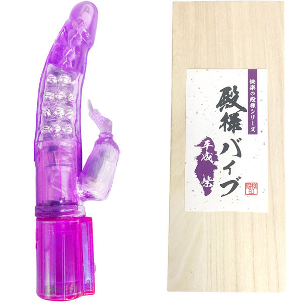 快楽の追求から生まれた極上の逸品!快楽の殿様シリーズが贈るパールバイブ。●殿様バイブ・平成紫タイプ●品格が漂う桐箱風パッケージ●先細の亀頭でスムーズ挿入可●絶妙角度のクリバイブが振動●回転刺激のメタルパール内蔵●振動&回転は個別に操作可能●微調整しやすいスライド式。振動&パールの回転刺激にもう夢中!極上の快楽を生むパール内蔵バイブレーターです。