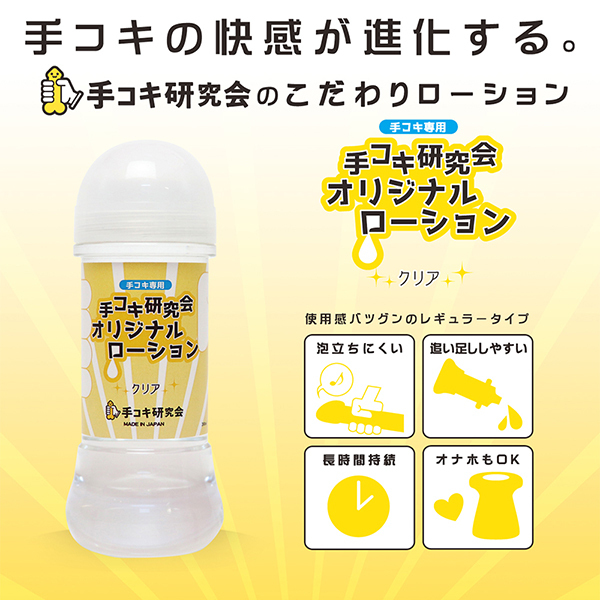 かつてこれほどまでに使用感の良いローションがあったでしょうか!?泡立ちにくくて追い足しがしやすく、長時間の持続までも実現した手コキ専用のローションです。企画したのは性を楽しむきっかけ作りにと、毎月開催されている「手コキ研究会」が企画を担当!切れが良くてヌルヌルが長時間続き、手コキ風俗店でも使われているほどのハイクオリティなローションです。普通のローションでは満足できない、どうせ使うならプロ御用達の配合のものが良い!そうお考えの方におすすめしたい、ワンランク上のローションです。もちろんオナホにもおすすめですよ♪ |