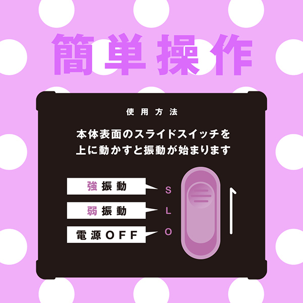 軽くて小さくて使いやすい!スティックローター感覚で使えるコンパクトな電マです。ビギナーさんに使って欲しいタイプで、簡単操作でお買い求めしやすい価格帯!「はじめて」に選んでほしい電マとなっています♪コンパクトボディーでもしっかりイケる強振動!誰でも簡単に操作できるシンプル設計でワンボタンでオンオフと振動の強弱を簡単操作♪ヘッドの素材はプラ系でネックの動きは軽快!電池を入れた状態でも90gの軽量設計ですので、使いたいときにすぐに楽しめます。便利な電池交換式で単4電池2本(付属)。こちらはパープルカラーです♪ |
