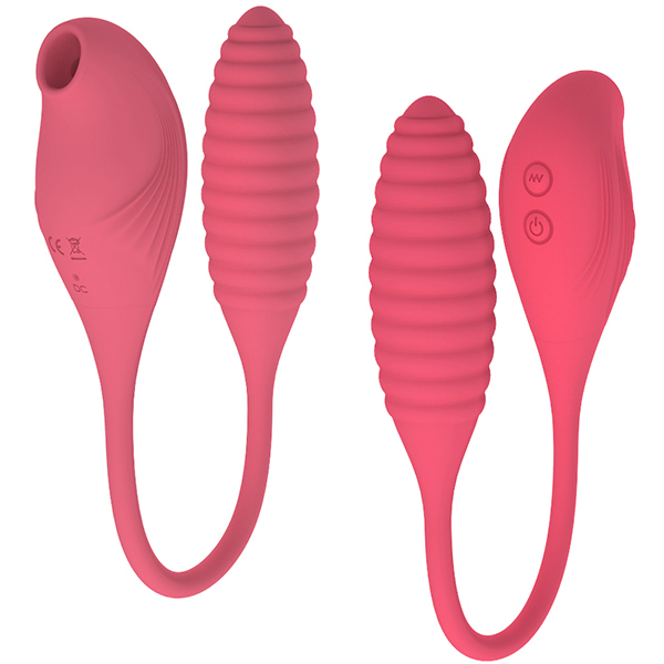 パッケージ:19.5×13.7×4.8cm 本体:吸引ローター9.8×4.1×3.9cm、ピストンバイブ11.3×3.5cm 素材:シリコン、ABS 重量:225g