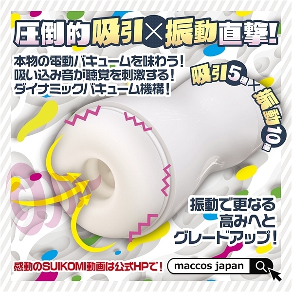 オナホールのバキュームとは全く違う。電動ポンプ並みの吸引が襲う!圧巻のバキューム体験!吸い込み過ぎてあそこがバキューン!の「SUIKOMIバキューン」の登場です。<電動ポンプの吸い込み力>×<振動>は吸い込みパターンの変化や振動パターンの変化で何度使っても新鮮な気持ちで楽しめます。いつでもプレイ(後処理ラクラク)が可能で場所(携帯可能)も問いません。手がベタつきにくい(直接触らない)。電動だから固定して、ボタン操作だけで自動で動きます。上下運動したり、捻じったり、傾けたり、回転させたり、擦りつけたり。深く入れたり、先端だけ刺激したり、フェラチオ耐性強化にも使えます。静穏設計。らくらく後処理。ロングプレイに最適です。<パーフェクトフェラチオマシーン>とでも言うべきなのか?是非ともお試しいただき、この吸い込み、この刺激を体験していただきたい。リラックス時間にどうぞお楽しみください。※ハマりすぎにはご注意ください。 |