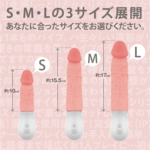 生感しっとりだからズッポリ密着!生感しっとりだから痛くなりにくい!生感しっとりだから可能な長時間プレイ!生感しっとりだから本気で悦ばれる!シリコン素材を使用した生々しい造形がリアルな1本ものバイブ。バイブのデメリットだった硬さの常識を覆した超しっとり素材を使用してますので、じっくりと確かな感覚をカラダで体感できます。本体の角度調整が可能なので自分の好みに合わせたスイング&バイブレーションを堪能できます。シリコンの独特なニオイを大幅カットしてますのでストレスフリーで楽しめます!完全防水(IPX7等級)面倒な使用後のお手入れも簡単。パートナーとのプレイに…1人プレイに…初心者〜上級者まで幅広くお使いいただけるアイテムです。付属品:USBマグネット式充電ケーブル●Mサイズ |