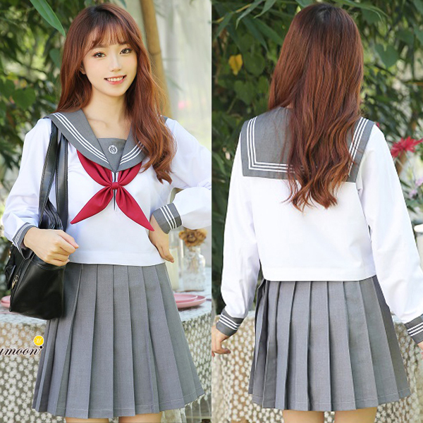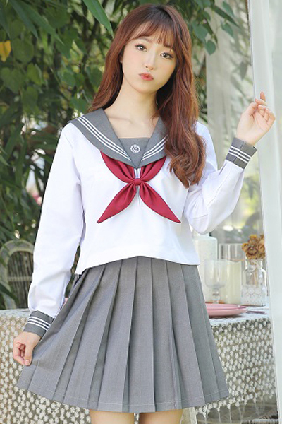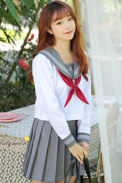 <malymoon>赤リボン長袖セーラー服(グレー)